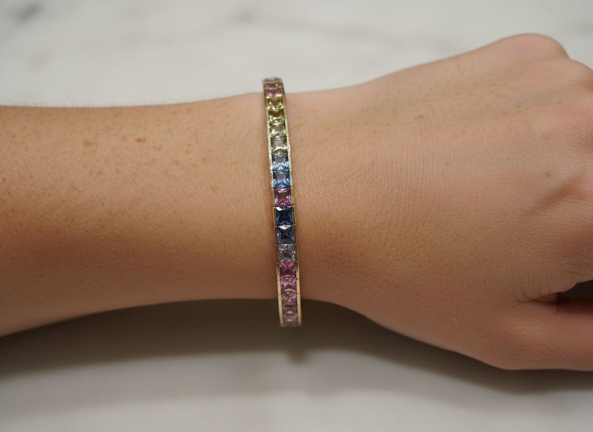 Karışık Safir ve Pırlanta Tiffany Ekolü Rainbow Suyolu Bileklik - PB0001295