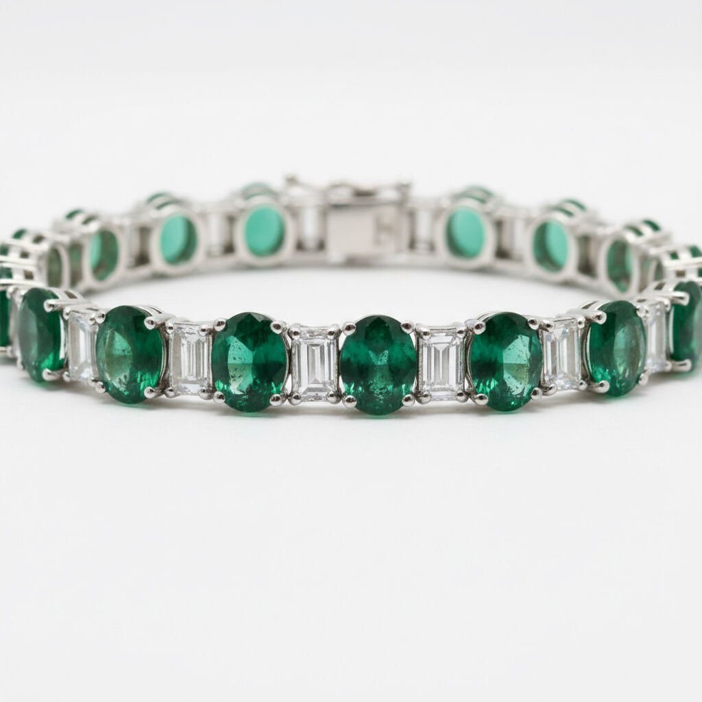 Pırlanta ve Zümrüt Cartier Ekolü Oval Kesim Riviera Bileklik - PB0001308