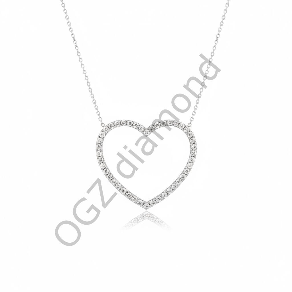 Pırlanta Taşlı Işıltılı Büyük Kalp Figürlü Eternity Kolye - PG0000532