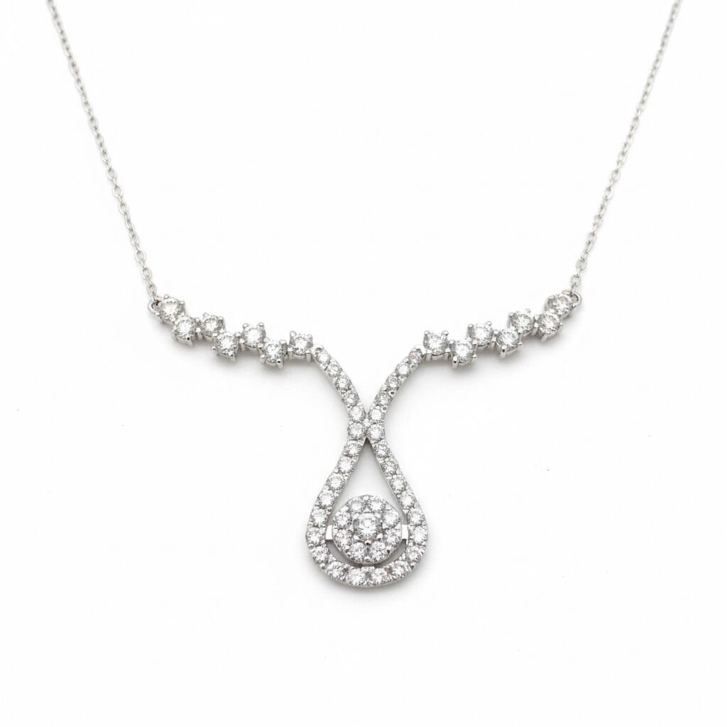 Sıralı Yuvarlak Kesim Pırlantalı Altın Damla Kolye - PG0000537
