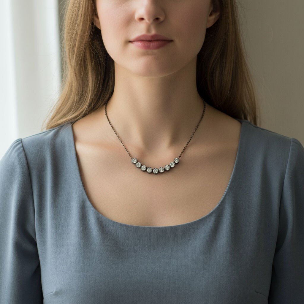 Sıralı Yuvarlak Kesim Pırlantalı Elmas Montür Kolye - PG0000759