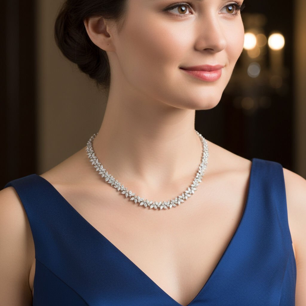Markiz Kesim Pırlanta Dizilimli Altın Gerdanlık - PG0000863