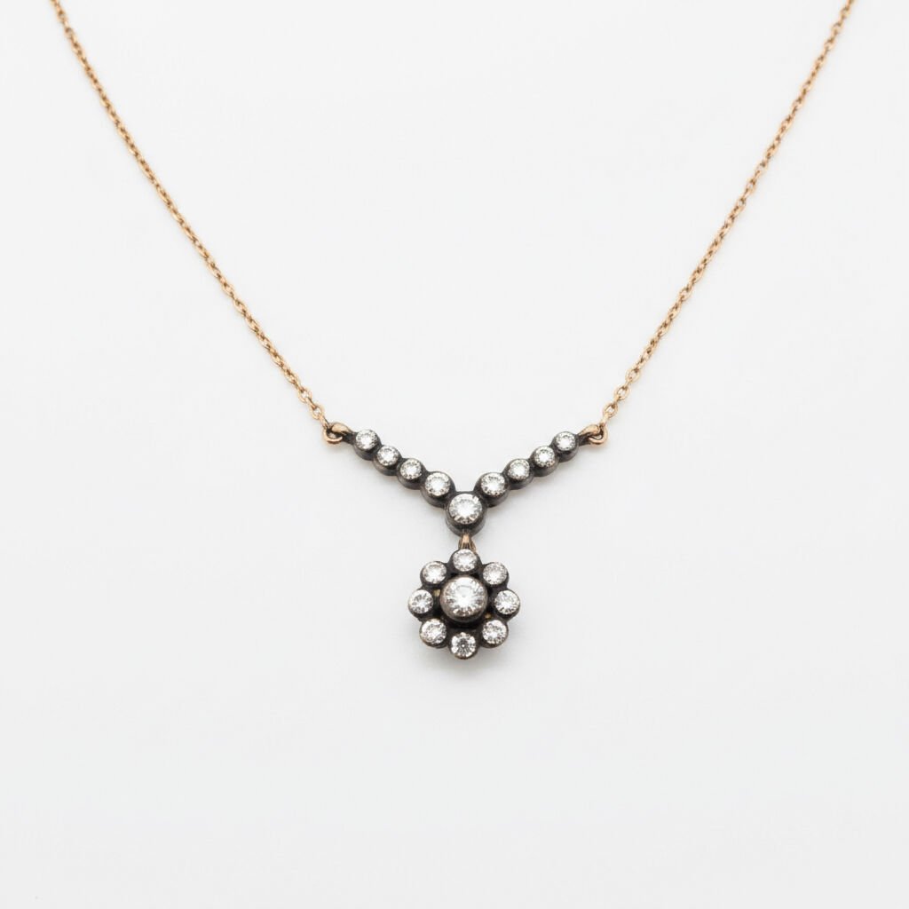 Sıralı Yuvarlak Kesim Pırlantalı Elmas Montür Altın V-Kolye - PG0001049