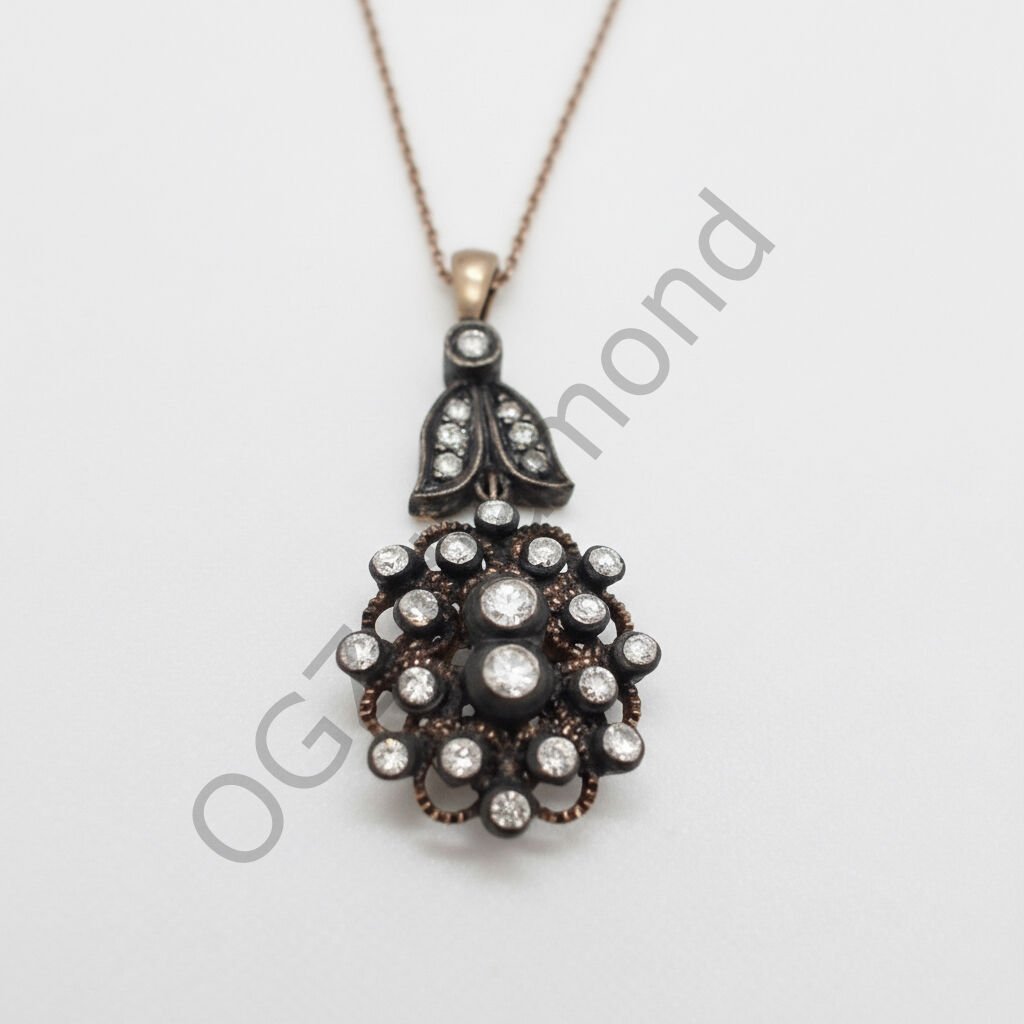 Pırlanta Antika Formlu Elmas Işıltılı Osmanlı Ekolü Lale Detaylı Gül Kolye - PG0001089