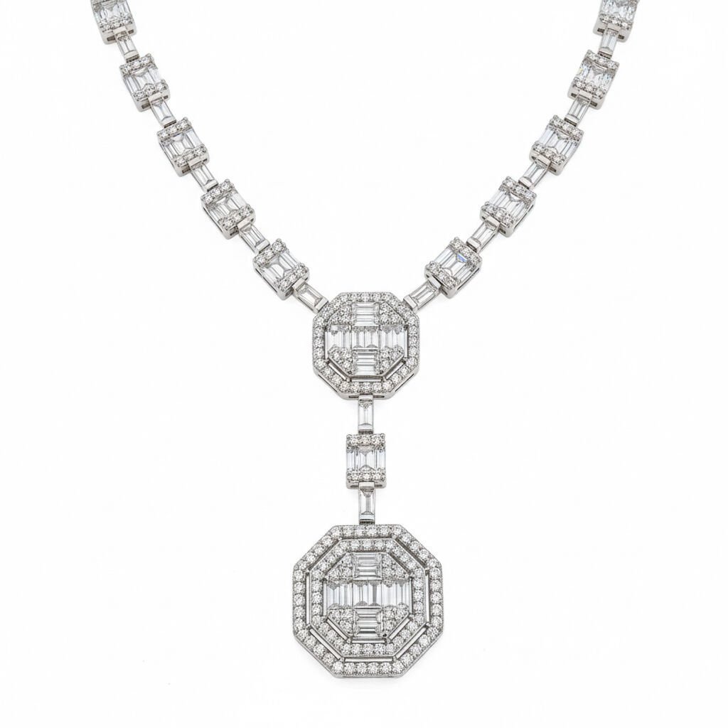 Baget ve Yuvarlak Kesim Pırlanta Dizilimli Altın Statement Kolye - PG0001116