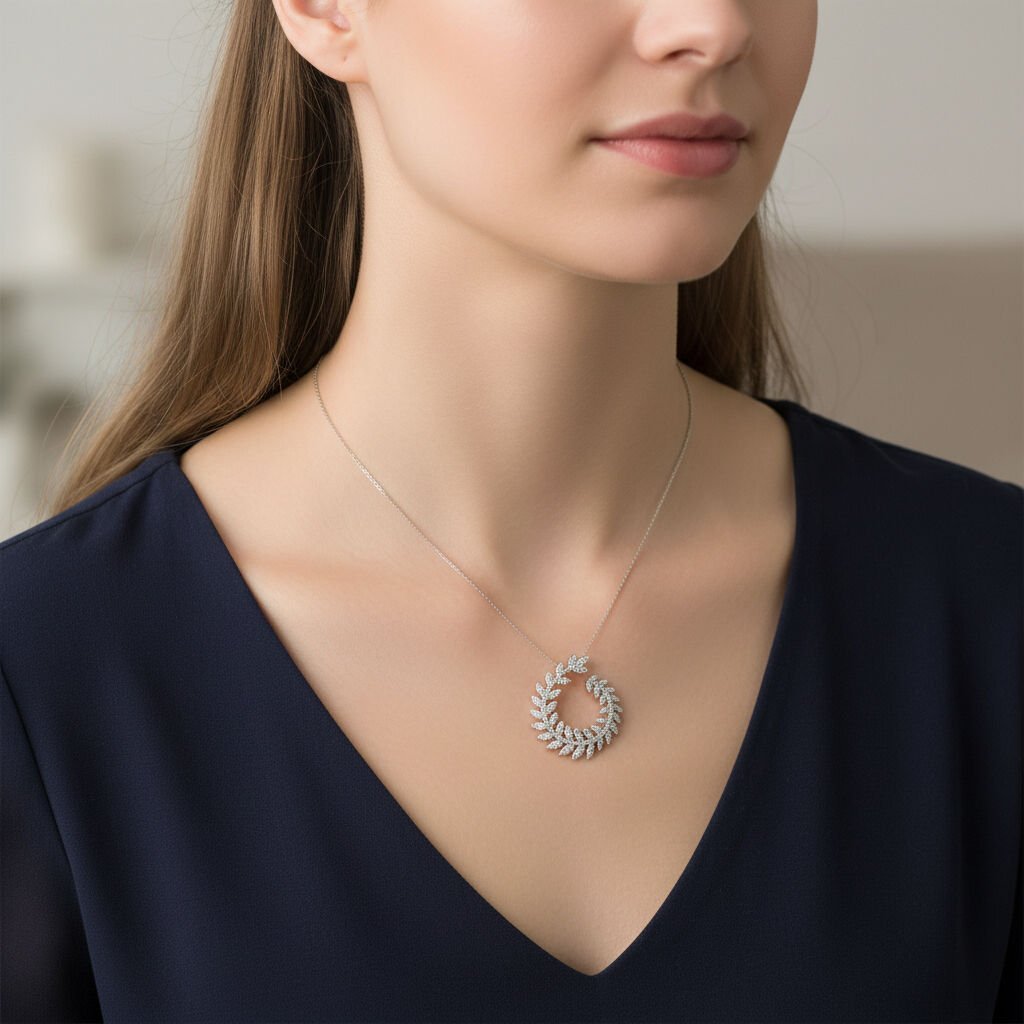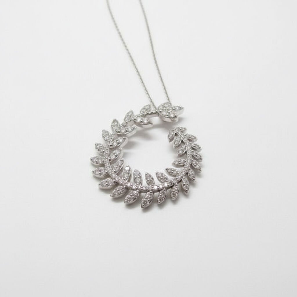 Sıralı Markiz Kesim Pırlantalı Altın Defne Dalı Halka Kolye - PG0001118