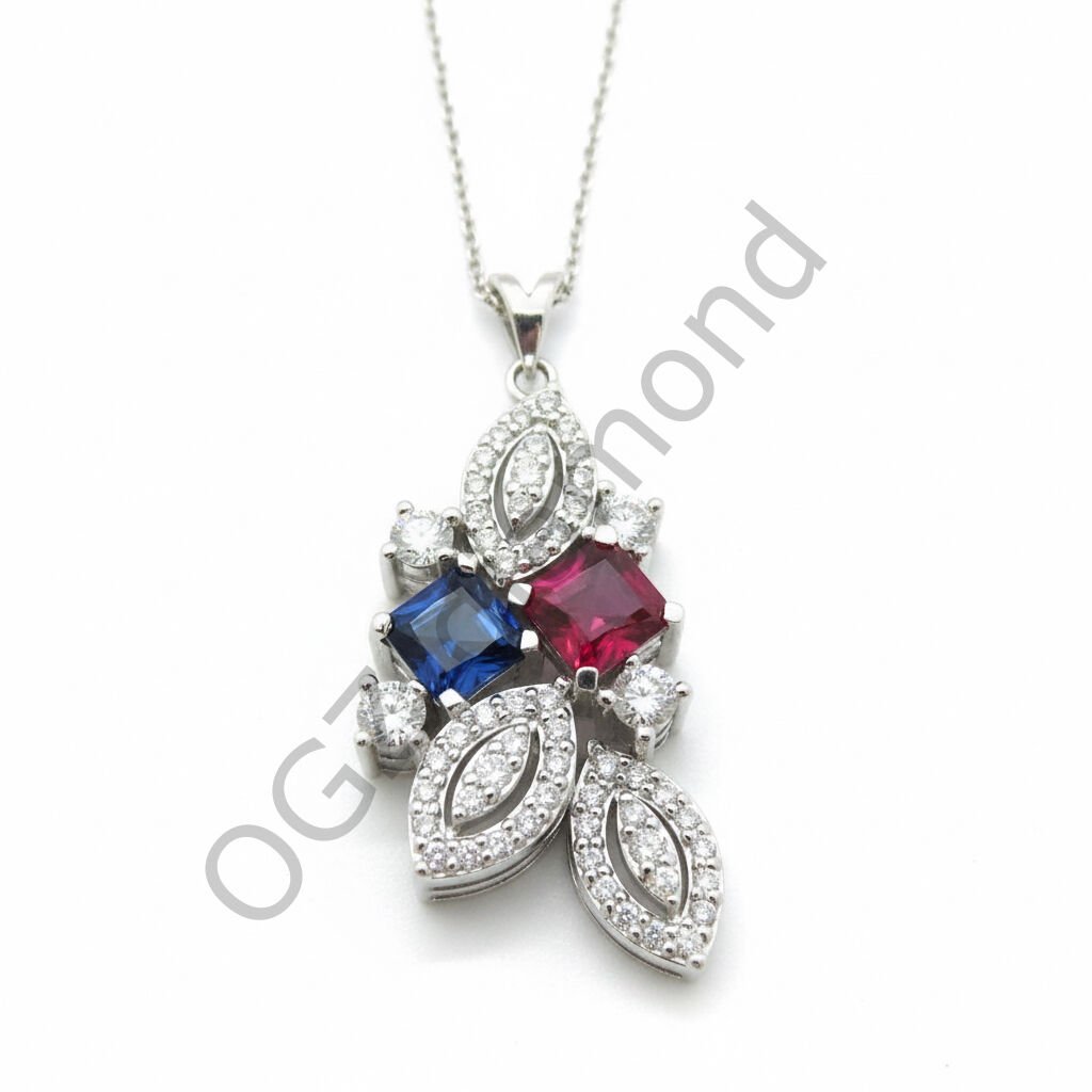 Pırlanta, Safir ve Yakut Cartier Ekolü Markiz Formlu Buket Kolye - PG0001121