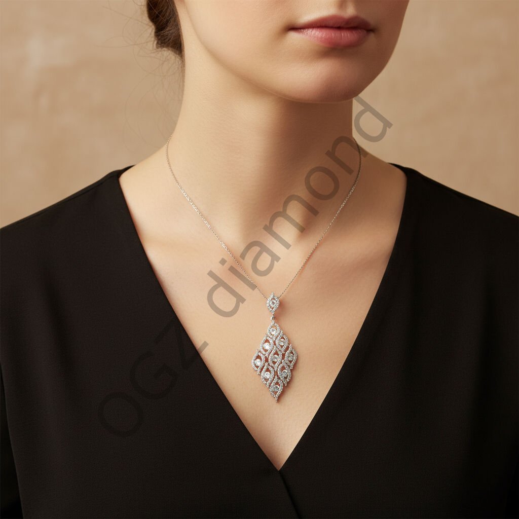 Pırlanta Işıltılı Markiz Formlu Vintage Dantel Kolye - PG0001131