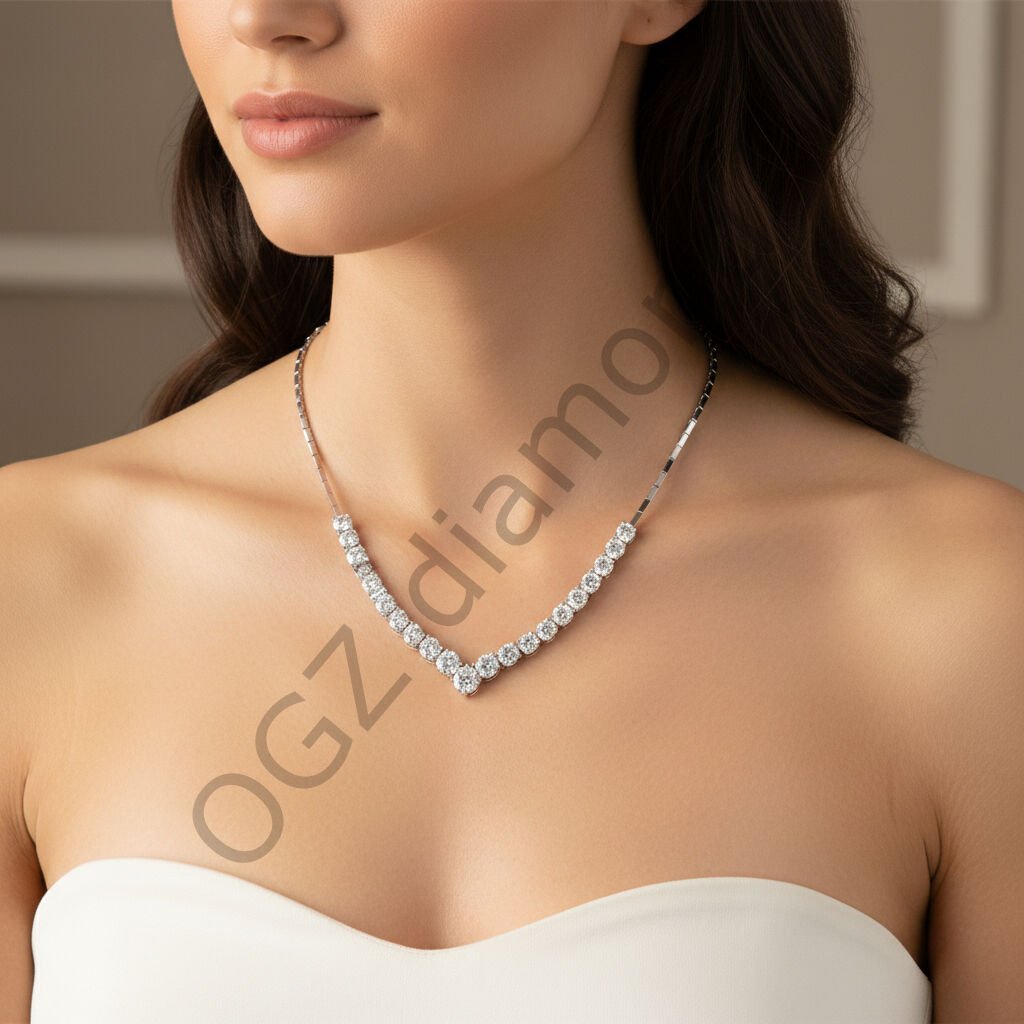 Pırlanta V-Form Klasik Riviera Suyolu Gerdanlık Kolye - PG0001371