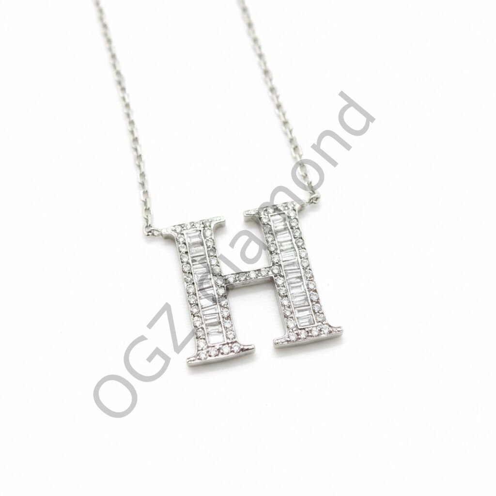 Pırlanta Baget ve Yuvarlak Taşlı İkonik H Harf Kolye - PG0001410