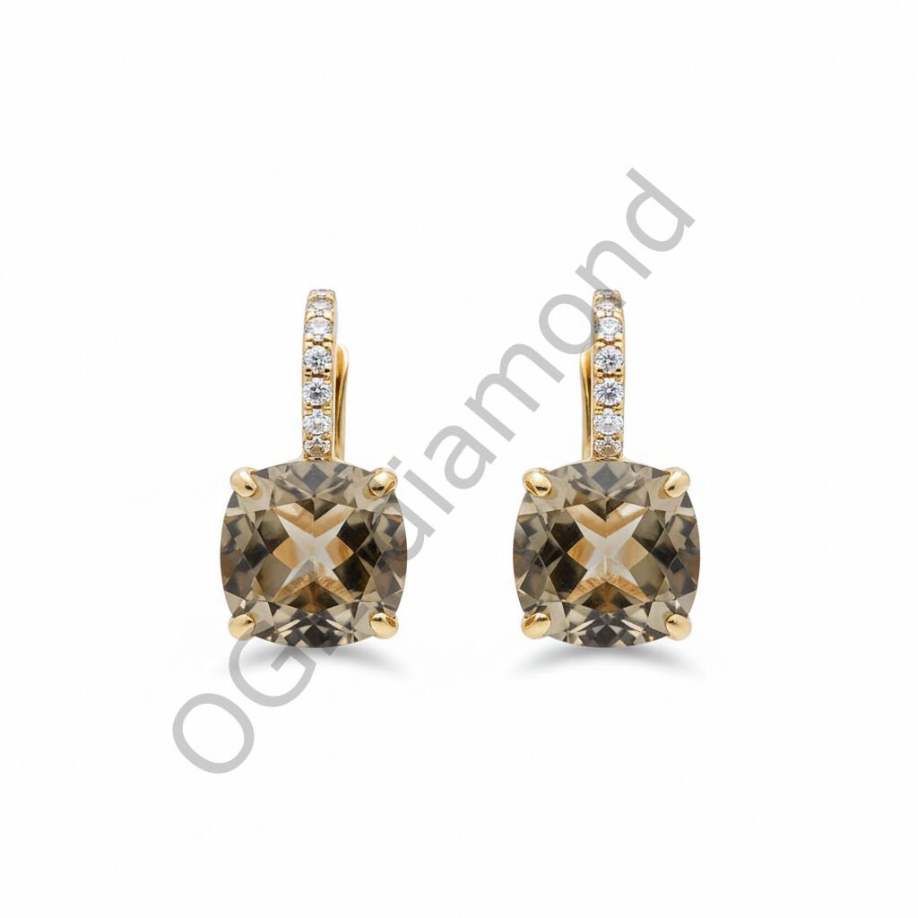 Kare Kesim Dumanlı Kuvars ve Pırlanta Dizili Küpe - PK0000943