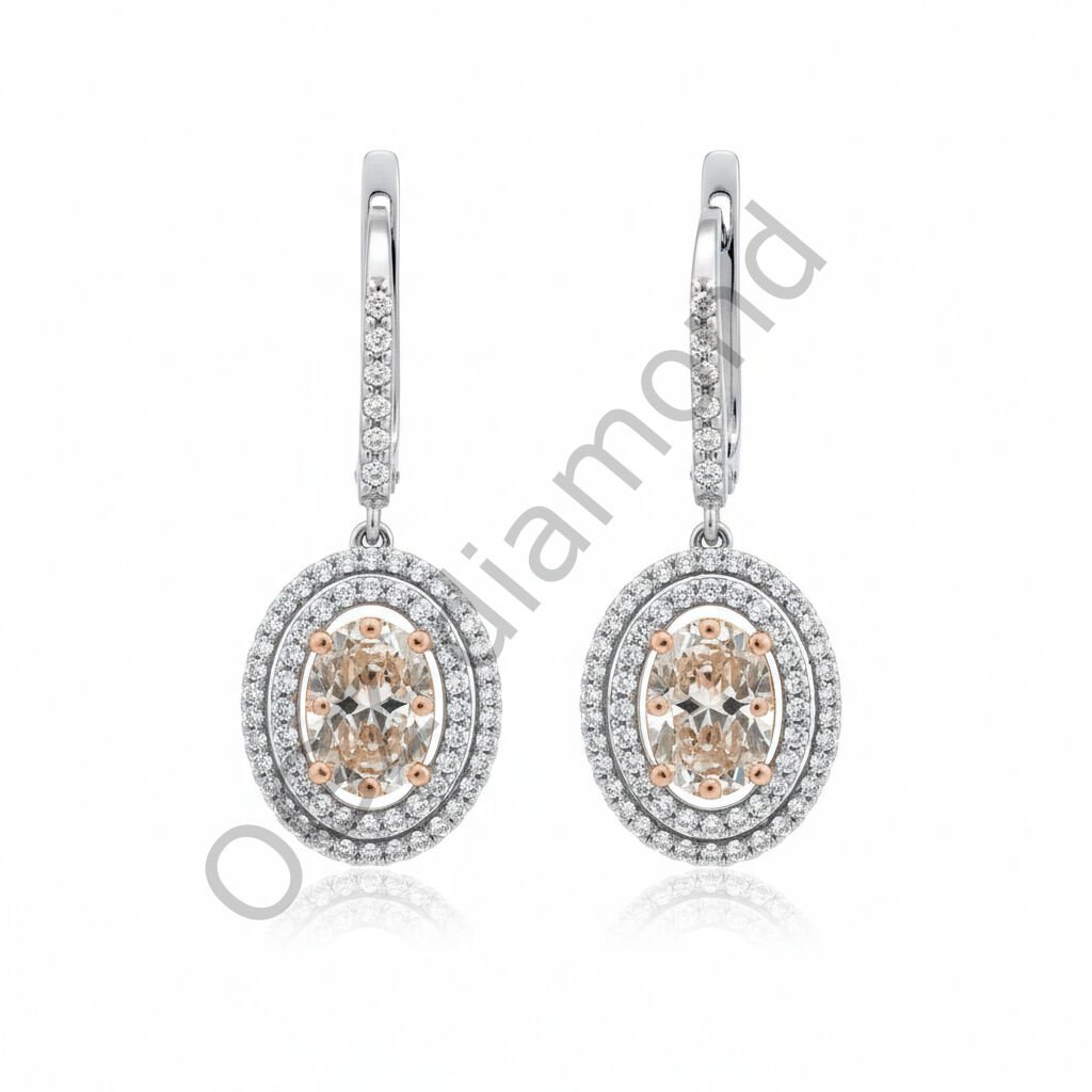 Oval Kesim Çift Sıra Halo Taşlı Pırlanta Sallantılı Küpe - PK0001023