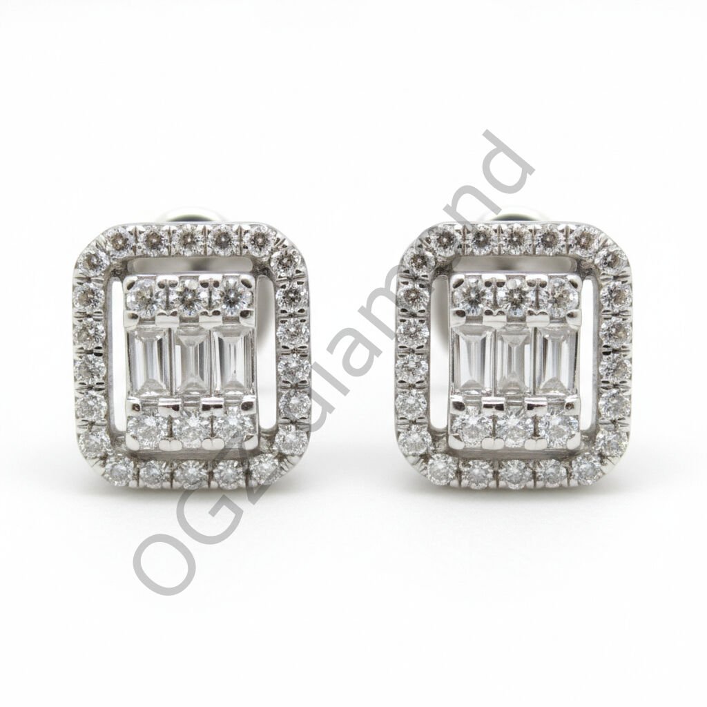 Baget ve Yuvarlak Kesim Pırlanta Kare Küpe - PK0001159
