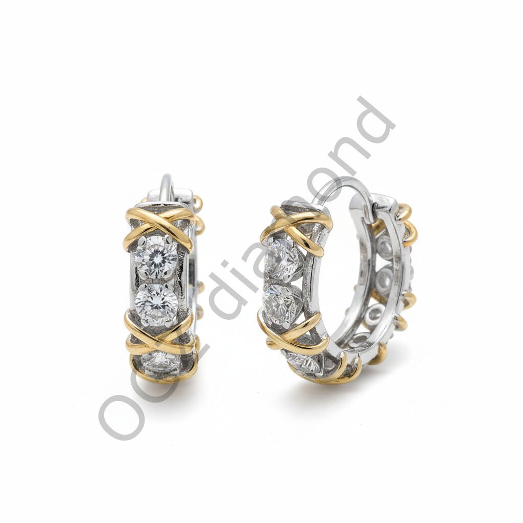 Pırlanta Baget ve Yuvarlak Taşlı Çift Renk Küpe - PK0001176