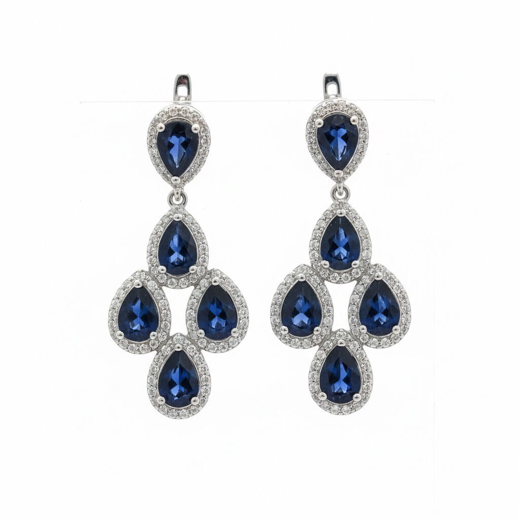 Sallantılı Damla Kesim Safir ve Pırlanta Taşlı Altın Avize Küpe - PK0001253