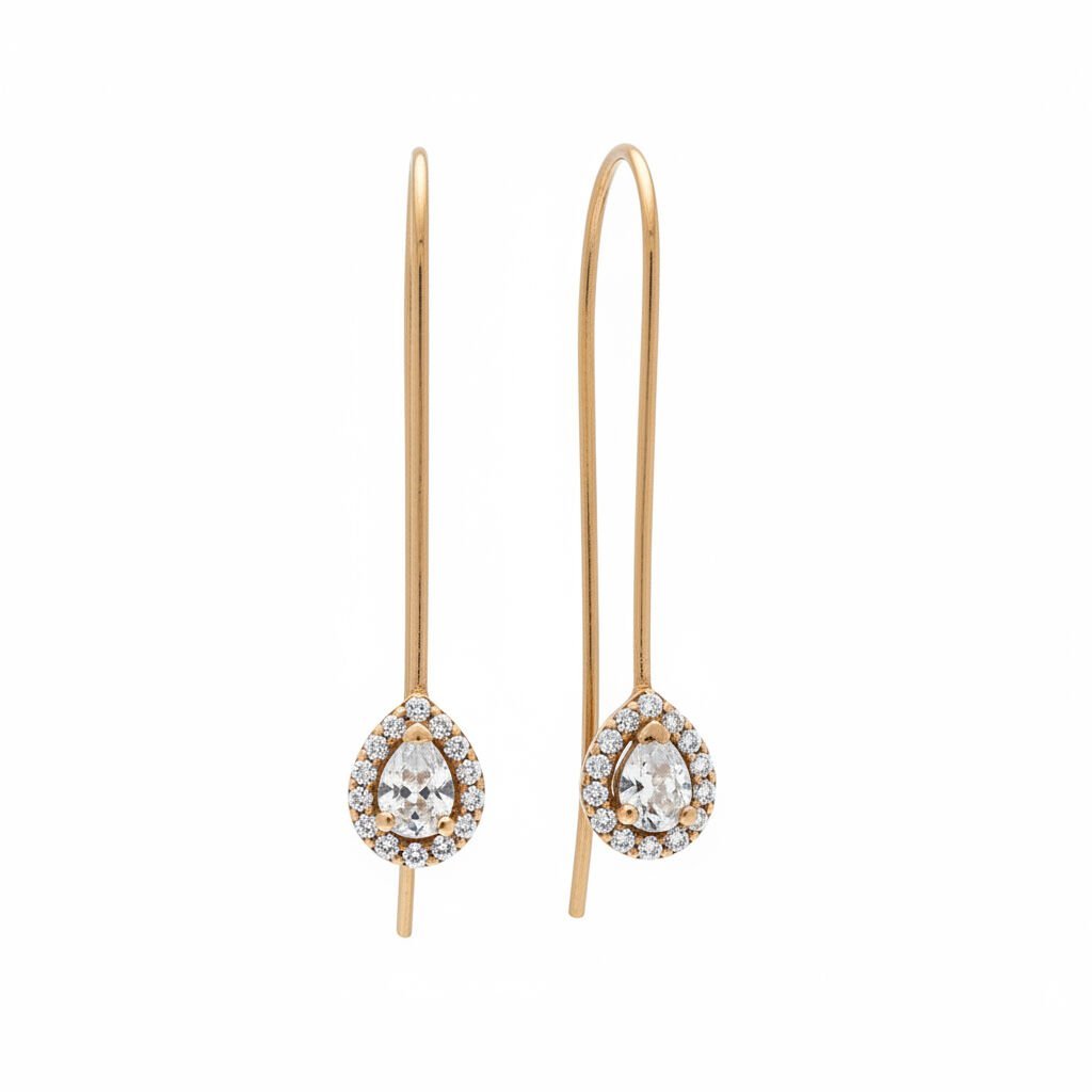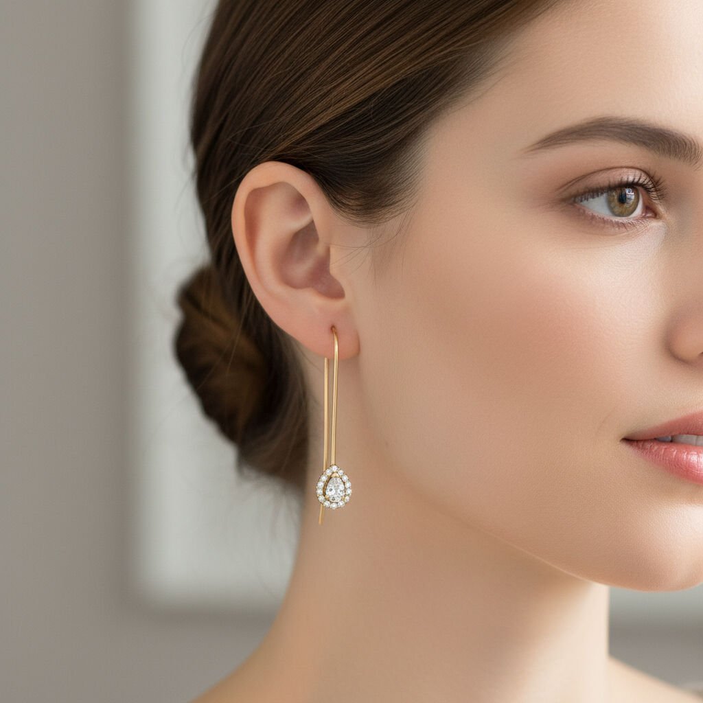 Sıralı Yuvarlak Kesim Pırlantalı Altın Damla Küpe - PK0001288