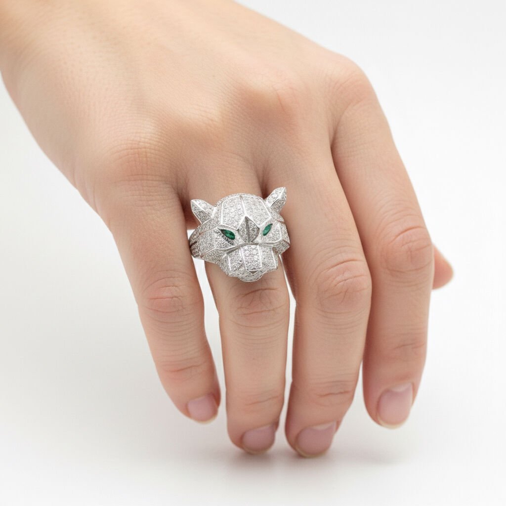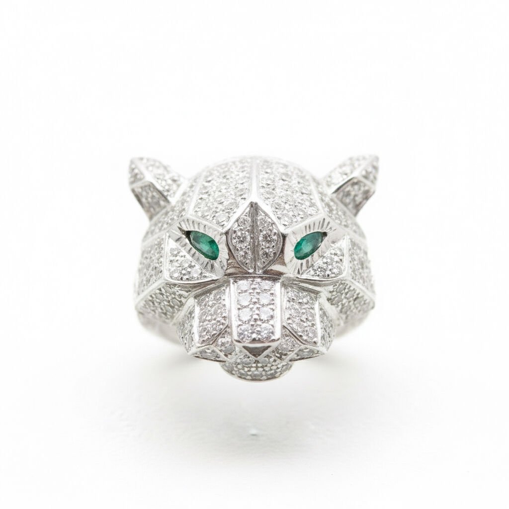 Zümrüt Gözlü Pırlanta Taşlı Altın Kaplan Yüzük - PY0000727
