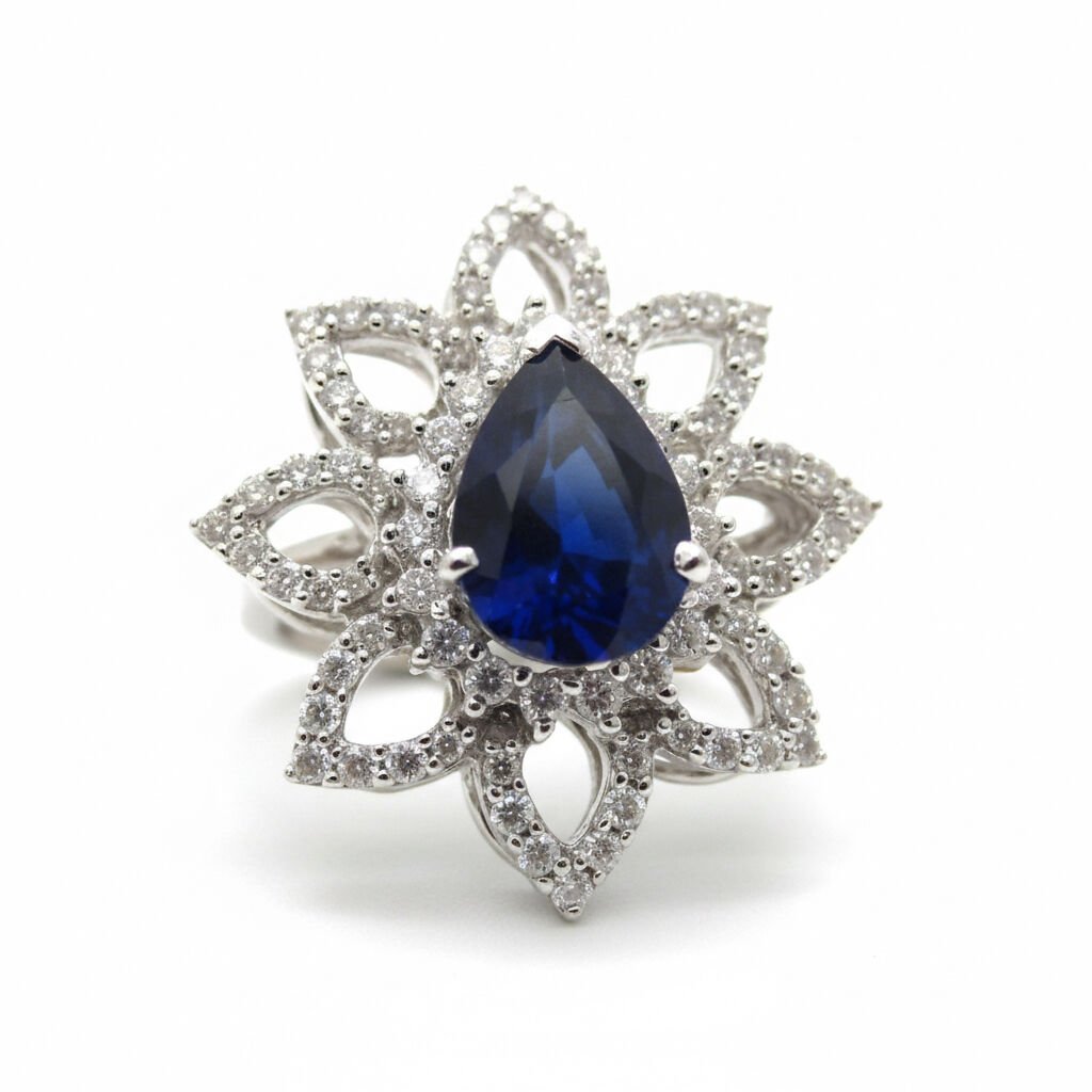 Damla Kesim Safir ve Pırlanta Taşlı Altın Çiçek Yüzük - PY0000947