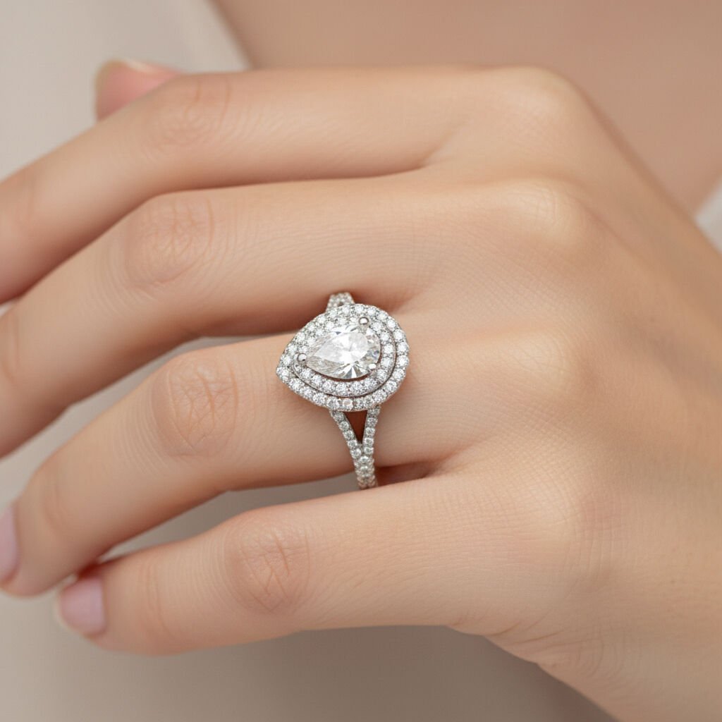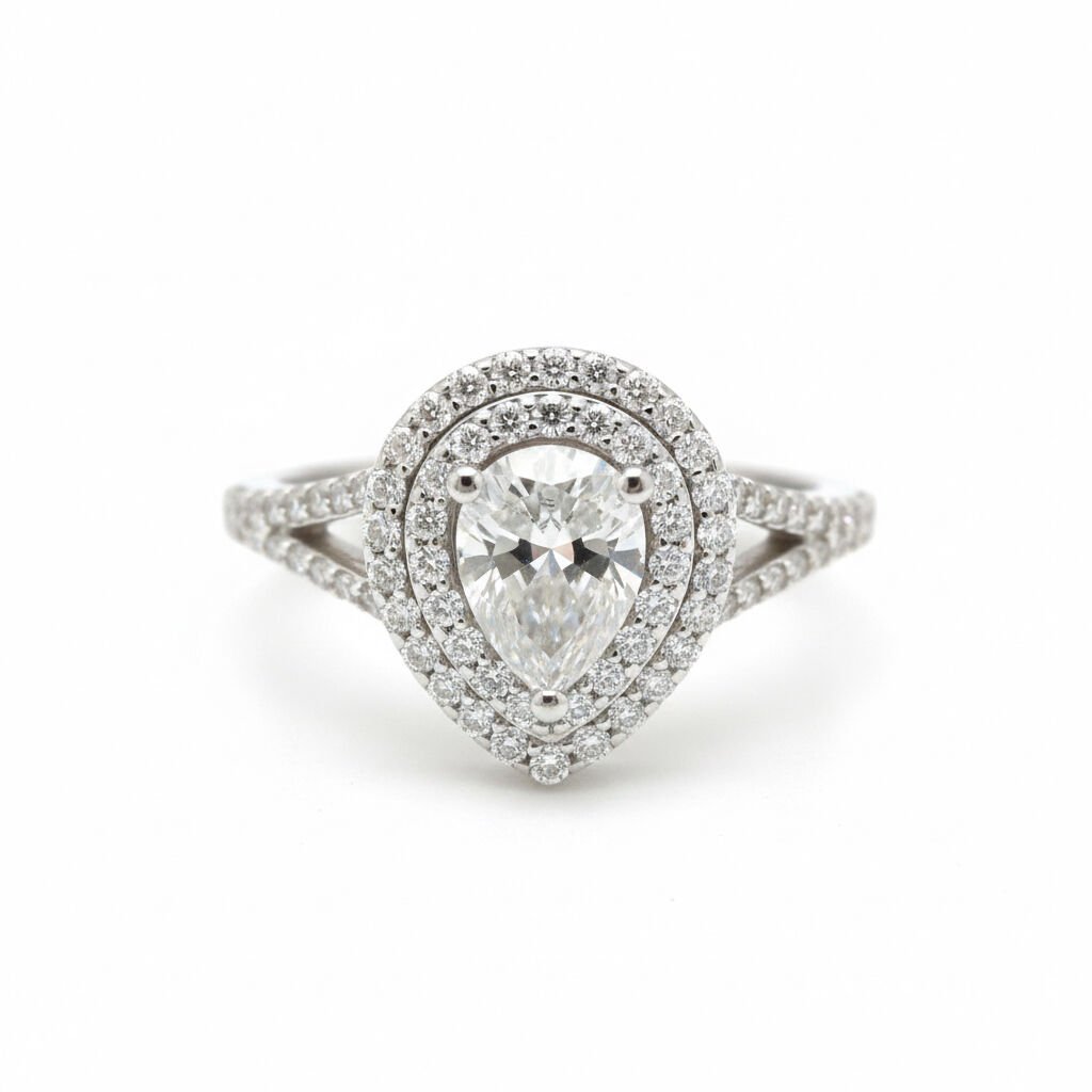 Pırlanta Tiffany Ekolü Double Halo Damla Kesim Yüzük - PY0002389