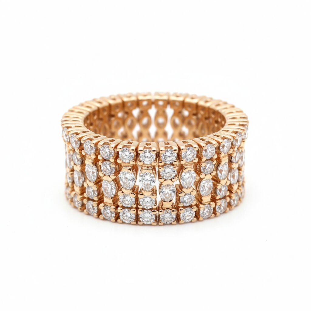 Luxury Statement Koleksiyonu: Markiz ve Yuvarlak Pırlanta Dizimli Çok Sıralı Rose Altın Görkemli Yüzük - PY0002709