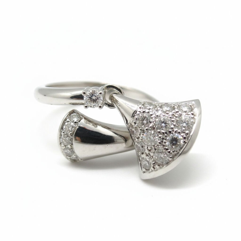 Diva's Dream Koleksiyonu: Pırlanta Taşlı Yelpaze Formlu Beyaz Altın Modern Tasarım Yüzük - PY0002719